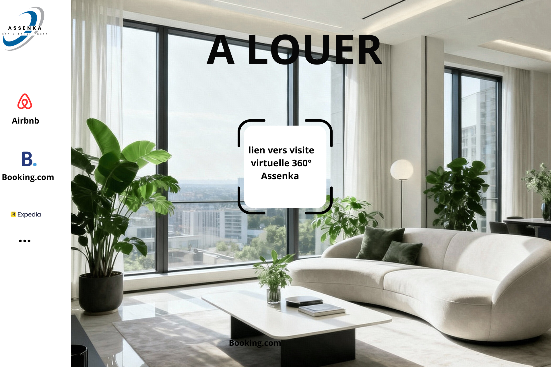 Une visite virtuelle 360° Assenka intégrée à votre annonce permet à vos futurs clients de découvrir chaque pièce comme s’ils y étaient — et de réserver en toute confiance.
